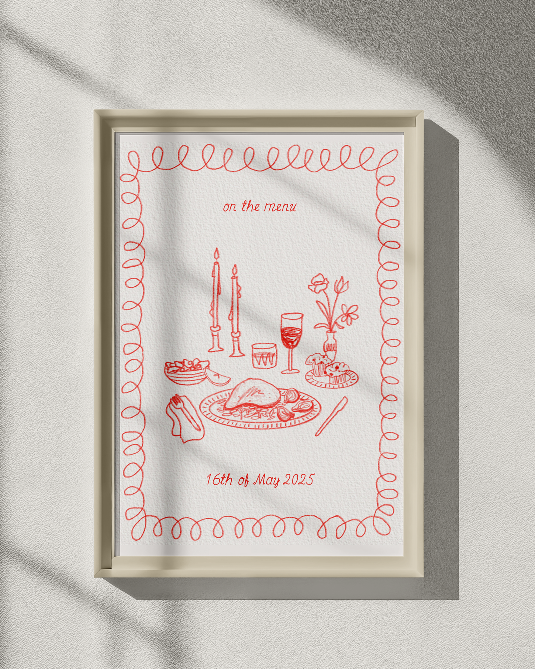 customization: After you place your order, I will reach out with a form to gather info about the food you want illustrated, your ideal colors, your wedding date, and product dimensions.